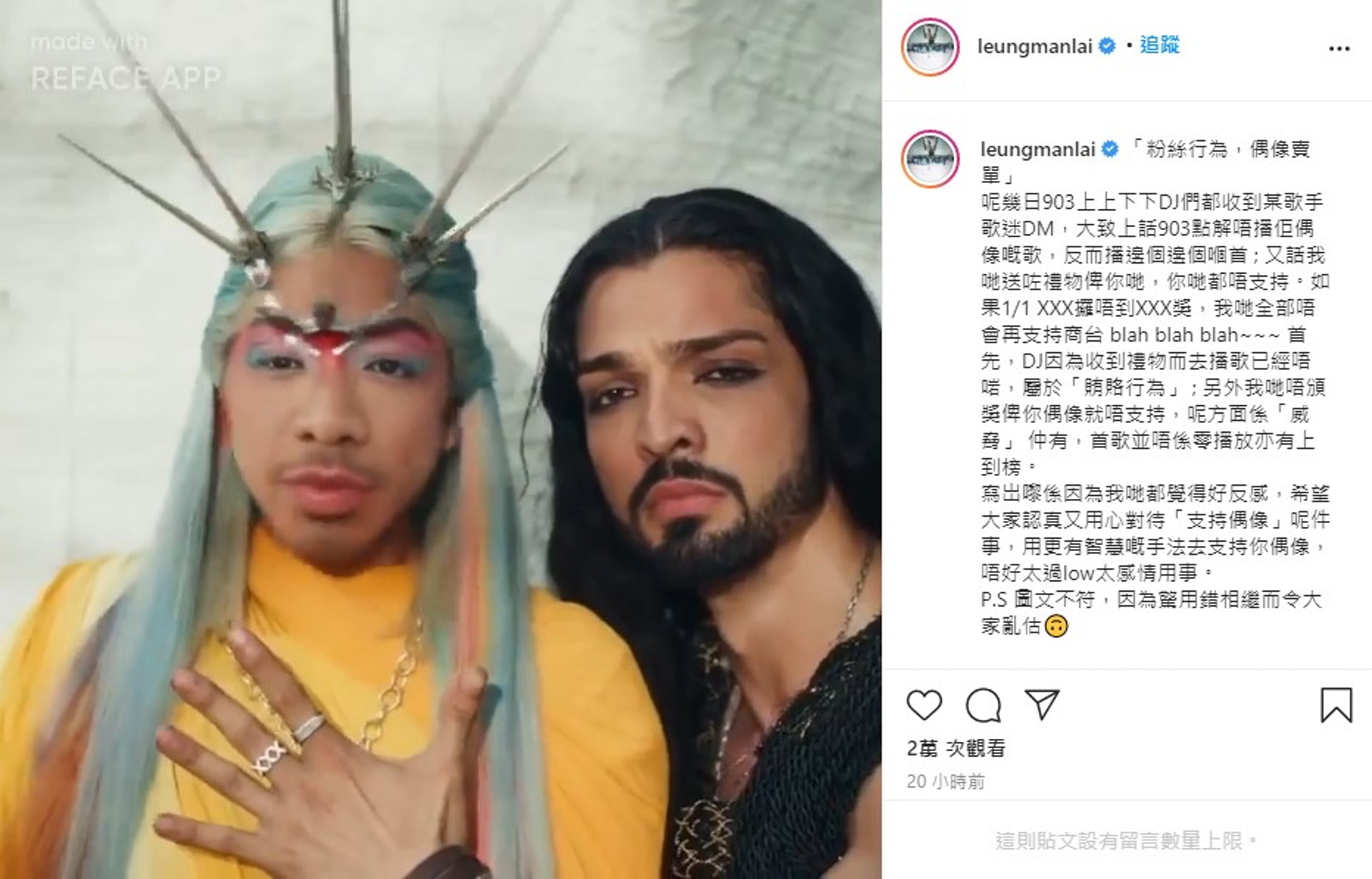梁文禮疑鬧anson Lo歌迷行賄送禮威迫dj播歌 粉絲行為偶像埋單